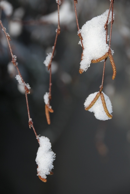 mais milliers de flocons blancs, blanc-gris, vision rétrécie, bordées de neige argentée sur l’asphalte mouillé.
